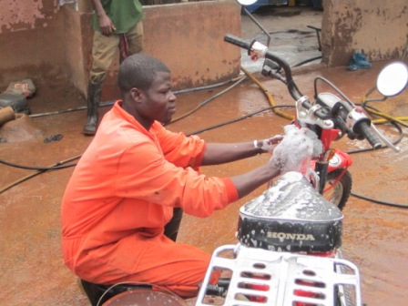 2学期お疲れさんだったね、の意味をこめて洗車隊にバイクを洗ってもらうことに。